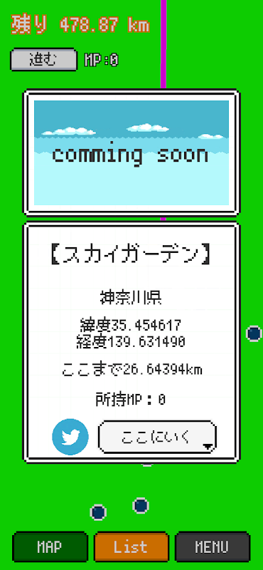 - Давайте установим пункт назначения с помощью кнопки «Список». Вы также можете установить его с помощью синей точки на карте.