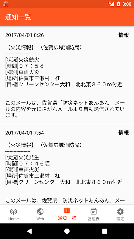 災害・防犯・火災・気象情報などの緊急情報を受信可能です。