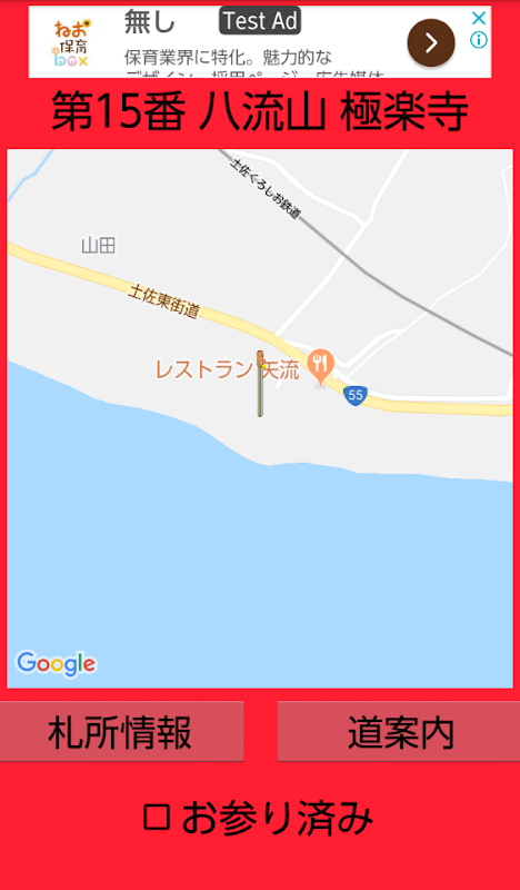 一部の札所は納経所から離れている札所に関しては、その場所を地図で確認することが出来るようになっています。