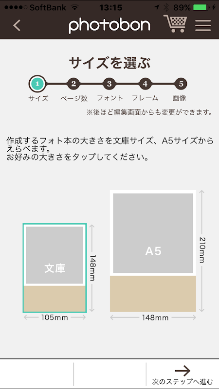 ※スマホアプリ版で作成できるのは、「文庫サイズ」「A5サイズ」の2種類です