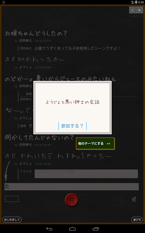 ちょっと話したい。 少しだけ頭を使いたい。そんな時に誰かと、しりとり で会話しませんか?気晴らしに、暇つぶしに、軽く使ってください。
