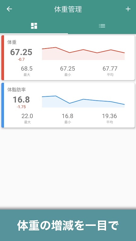 体重・体脂肪率・血圧の測定結果を簡単に記録・管理できる無料アプリです。じぶんの身体の数値を記録して健康管理を行いましょう。