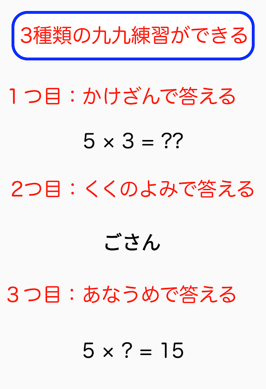 С помощью этого приложения вы можете легко выполнить тест на умственную арифметику, мысленную арифметику, чтение вслух, мгновенную мысленную арифметику и проверку таблицы умножения. Поскольку у нас есть счеты, вы можете их вычислить или рассчитать, используя фактические счеты, и ответить, используя счеты приложения. Вопросы всегда отображаются как новые, что делает его идеальным приложением для практики по математике.