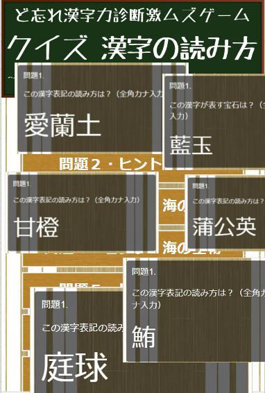 あなたのど忘れ漢字を再発見する漢字力診断クイズ(読み方編)です。普段口にするけど漢字にすると分からない問題が出題される激ムズゲーム。