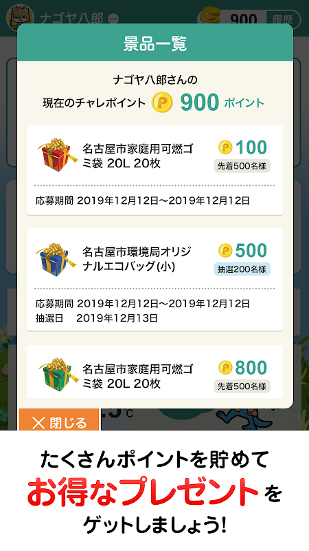Oписание なごっちゃ -名古屋市環境行動促進アプリ-