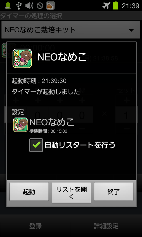 ※このアプリは"アプリタイマー"をおさわり探偵 なめこ栽培キット専用に改良したものです