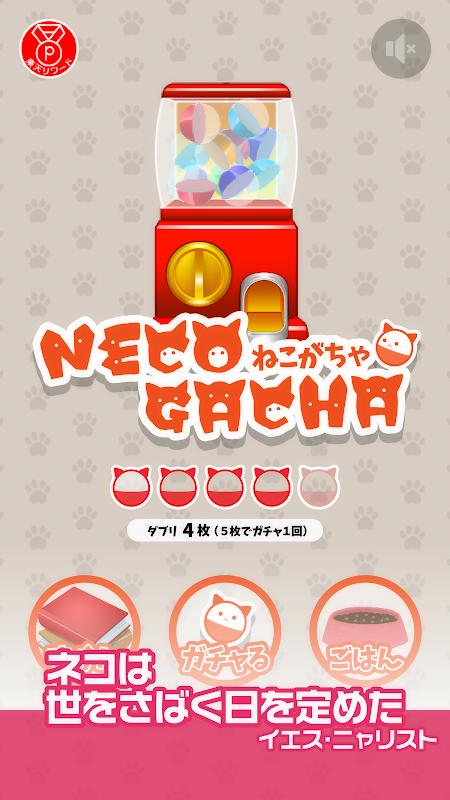 ねこを飼っている方必見!ねこが好きな方も是非遊んでみてください!ガチャは全100種類!!可愛いねこがいーっぱい♪コンプリートを目指してガチャを回しまくろう!