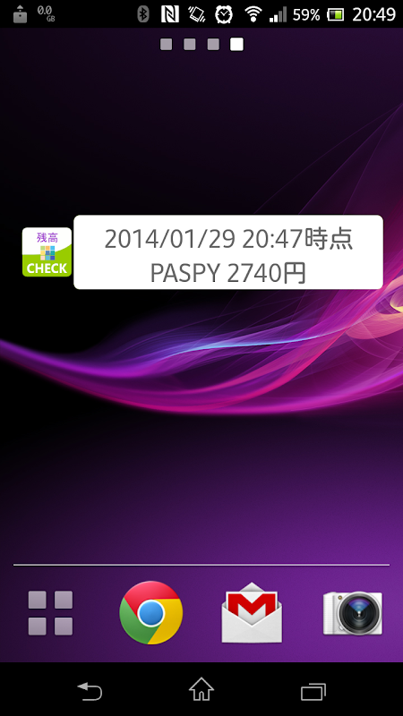 最後に確認した残高を常に表示させておくこともできます。