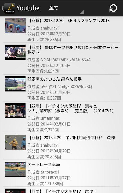 ・Youtube表示(競馬、競輪、オートレース、ボートレース)