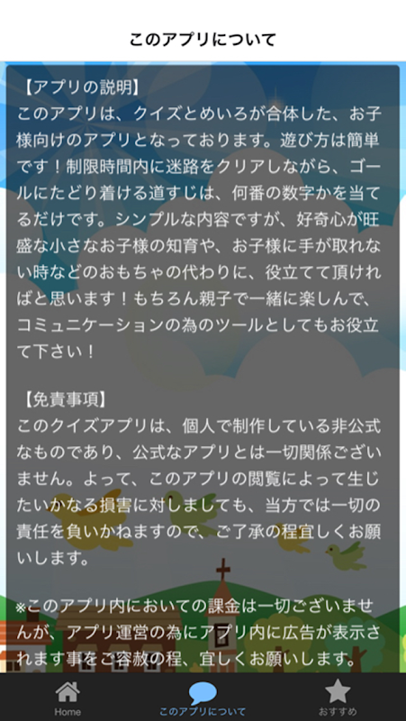 このアプリは、クイズとめいろが合体した、お子様向けのアプリとなっております。迷路をクリアしながら、ゴールにたどり着ける道すじは、何番の数字かを当てるだけです。