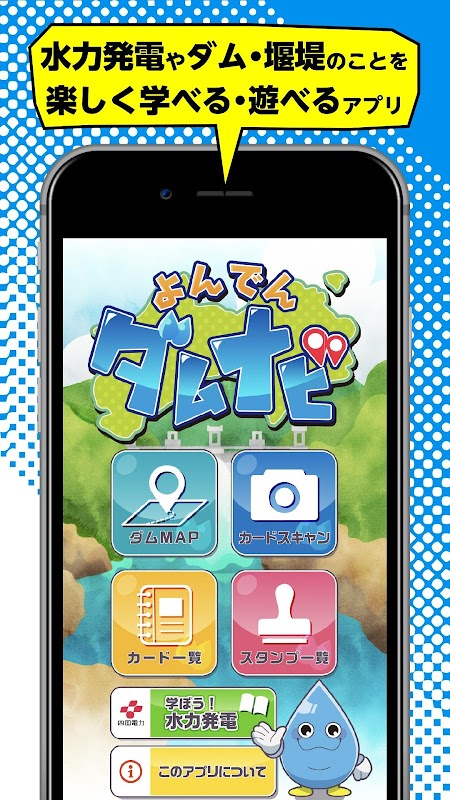 Это приложение используется при посещении плотин в Сикоку. Вы можете получить «Печать плотины» и «Дум Робо» или отсканировать «Карту плотины».