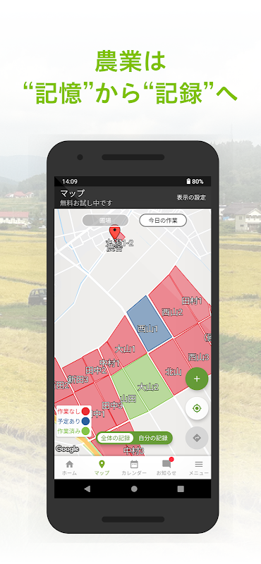 Записывая содержание сельскохозяйственных работ, в том числе когда, кто, на каком поле и какая работа была выполнена, а также используемые материалы, в Agrinote, а также централизованно управляя историей работы, можно добиться эффективности работы и обзора затрат. воспользоваться этим.