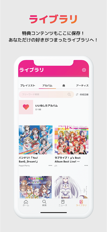 作品名から主題歌、キャラクターソング、サウンドトラック等の検索ができ、作品の関連楽曲に簡単に出会うことができます!