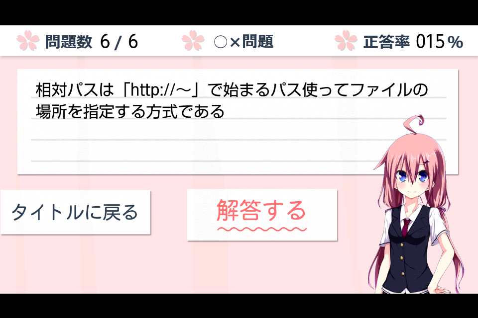 クイズゲーム形式でHTMLのお勉強ができる学習アプリです。