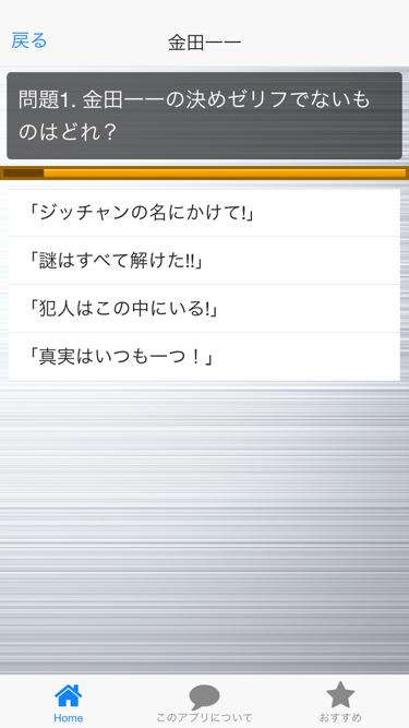 このアプリは「金田一少年の事件簿」が大好きな人のために,マニアックなクイズを出題している。この後も随時問題を追加していく予定なので,お楽しみに!