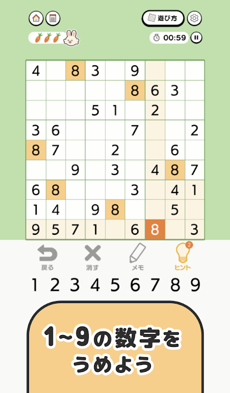 2. Не вводите одно и то же число дважды в каждом вертикальном или горизонтальном столбце или в блоке 3x3.