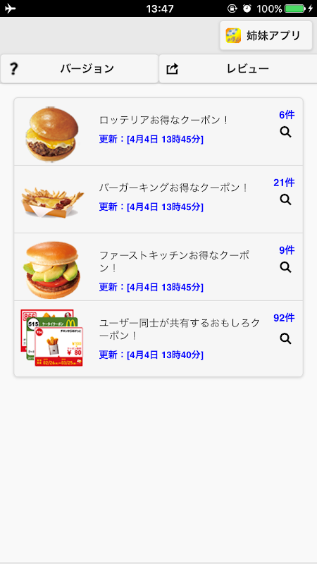 ・1タップでクーポン券をダウンロード、更新できます。さらにオフラインでも参照できます