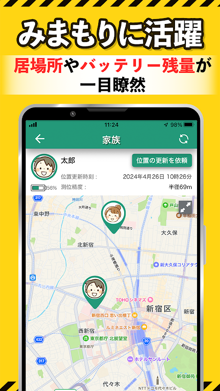 – Я беспокоюсь о том, что мои дети поздно возвращаются домой, поэтому мне нужно приложение с данными о местоположении и безопасностью для моего спокойствия. – Я хочу регулярно проводить с детьми учения по эвакуации и повышать их осведомленность о чрезвычайных ситуациях. (Уведомления о раннем предупреждении о землетрясениях отправляются первого числа каждого месяца, чтобы семья могла отработать учения по предотвращению землетрясений.)
