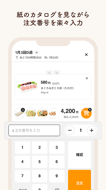 Вы можете разместить заказ, просмотрев бумажный каталог из приложения и нажав номер заказа на бумаге. Вы можете просмотреть каталог в любое время и в любом месте.