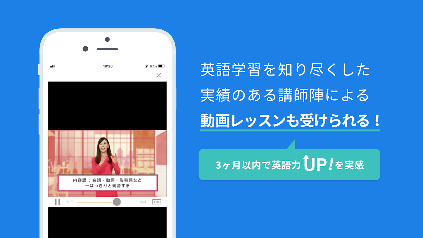 Мы предлагаем полный спектр функций, включая онлайн-курсы английского языка, проводимые лучшими преподавателями английского языка в Японии, функцию моделирования разговора с персонажами и обучение аудированию, которое автоматически обнаруживает и устраняет причины неразборчивости.