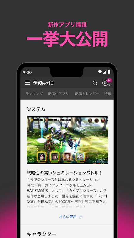 オススメの新作アプリや新作ゲーム、大人気になりそうな神アプリ候補をランキング形式で事前紹介!新作アプリやゲームを事前登録すると、リリースされ次第、プッシュ通知/メールにてお知らせしますので、いち早く新作アプリ、ゲームを遊べます♪ 予約特典、アイテムギフトがあるアプリもあります!!スタートダッシュで最速攻略するには、事前ナビ、予約特典、レアカード、限定アイテムやギフトなどが必須です♪