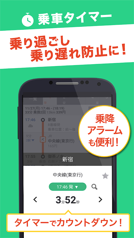 ●出発地から目的地までの最適な乗り換え、運賃、所要時間を素早くカンタンに検索。出発・到着時刻はもちろん、経由地を4件まで指定できます。乗り換え時に何番線に行けば良いか分かる「発着番線」、座って乗りやすくなる「当駅始発」情報も表示。