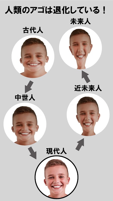 「人類のアゴは退化している」 このカメラはあなたの過去の先祖の顔、そして未来の子孫の顔を写し出します。タイムトラベラーが写し出す真実に目をそむけてはいけない