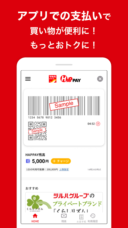 ・Удобная функция оплаты с помощью смартфона, которую можно использовать во всех магазинах Tsuruha Group (кроме аптеки Kyorindo).
