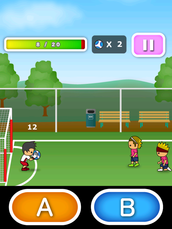 パワーやジャンプ力を強化して、次々にゴールを決めよう!