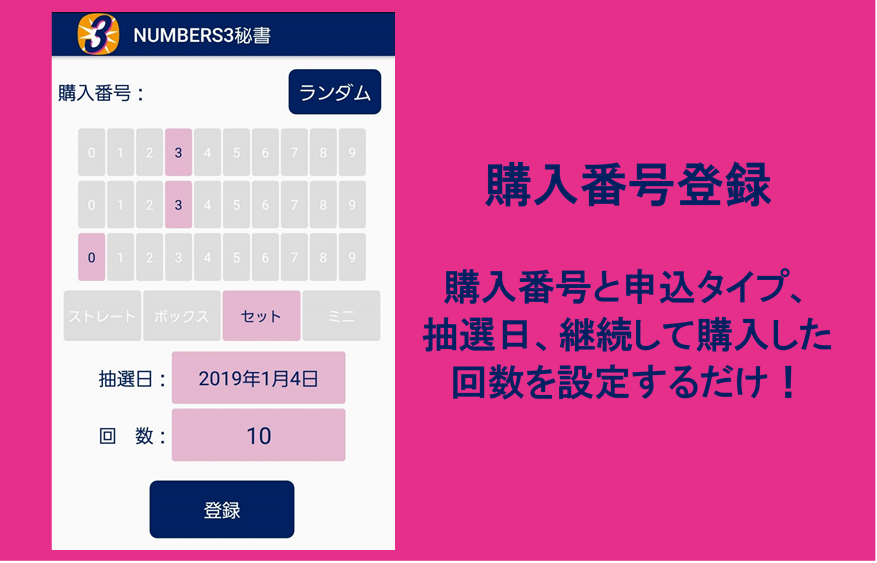 Секретарь NUMBERS3 - это приложение, которое уведомляет вас о результатах лотереи в кратчайшие сроки и автоматически проверяет их.