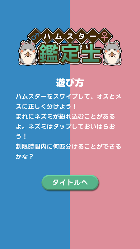 Стремитесь набрать больше очков, быстро разделяя летящих хомяков на самцов и самок на уровне сложности, который подходит игроку!