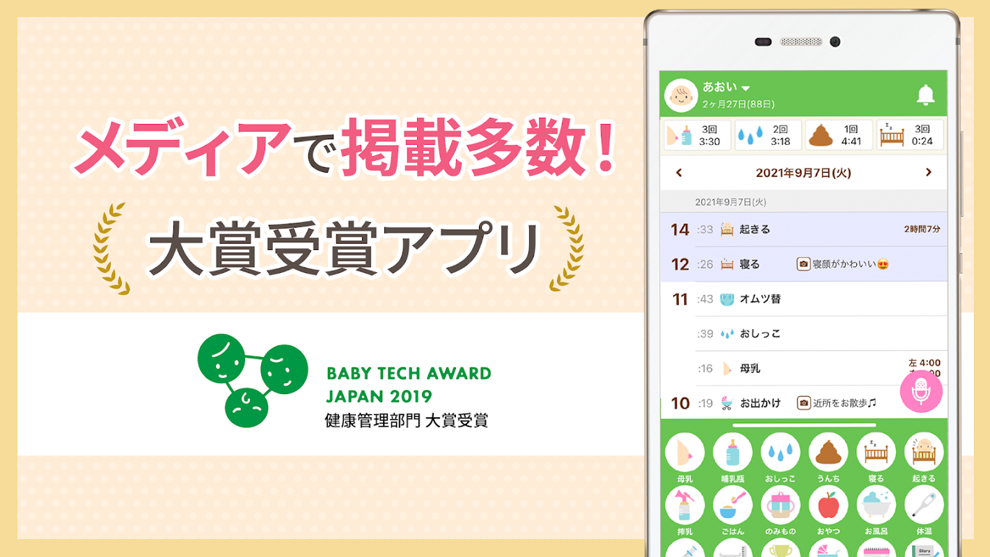 Papatto Childcare — это совместный исследовательский проект с Национальным центром здоровья и развития детей, и в результате он оснащен функцией анализа записей по уходу за детьми и предоставления рекомендаций на основе ноу-хау.