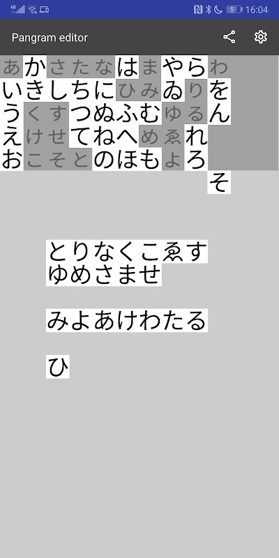 ひらがなを並べ替え、いろは歌のような文章(パングラム)を作成するのに役立つアプリ。ひらがなを指で並べ替えたり、「共有」メニューから他アプリと共有できます。