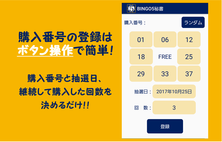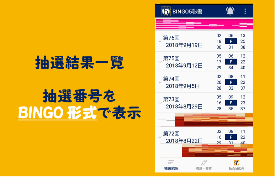 Секретарь БИНГО5 представляет собой приложение, которое уведомляет о результатах лотереи «Бинго 5 (Бинго пять)» и отображает его в удобном для чтения виде. Зарегистрируйте купленный номер и сразу проверьте оценку и сумму выигрыша.