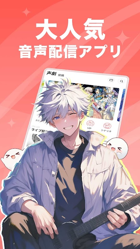 Вы можете наслаждаться таким контентом, как песни/выступления, песни о любви, AMSR, чаты, голосовые драмы, голосовые пьесы и т. д. в любое время и в любом месте!