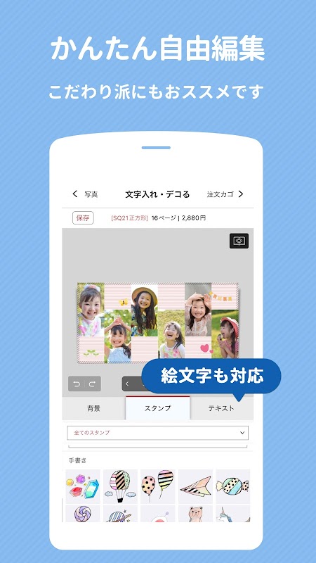 Украсьте свой фотоальбом милыми штампами для особых случаев и стильными фонами. Вы также можете добавить текст для особого сообщения.