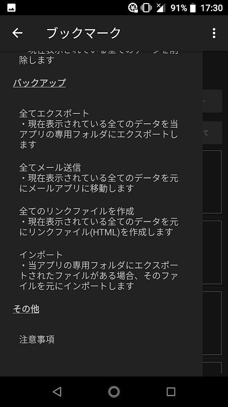 ・ブックマークのインポート・エクスポート。