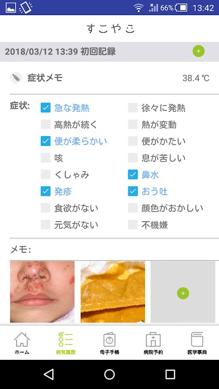 ☆お子さんの症状や病気の記録が残せる!