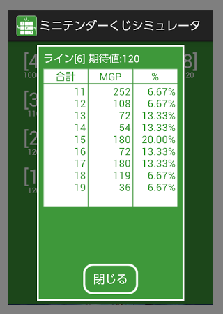ラインの数字[1]をタッチするとそのラインのMGPの確率詳細がみれます。