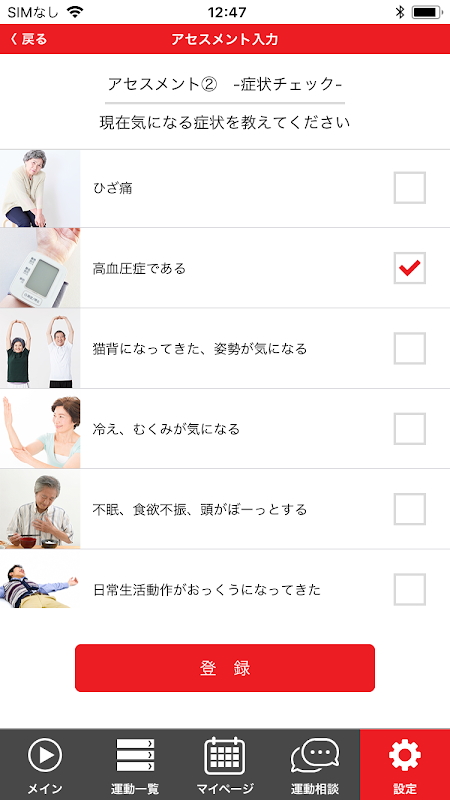 ・ 「症状」チェックに高血圧、姿勢、冷え、むくみ、不眠、等の9項目を追加し、さらに最適な運動プログラムをレコメンド