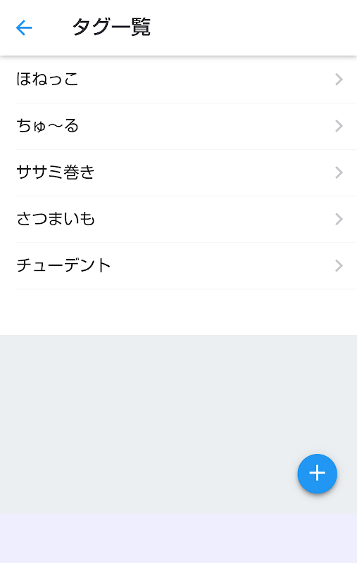 (6) На экране списка тегов нажмите кнопку (+) в правом нижнем углу экрана, чтобы отобразить экран регистрации тегов.