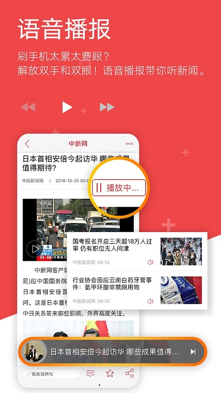 - 语音播报:腾不出手刷新闻?解放双手!语音播报带你听新闻。