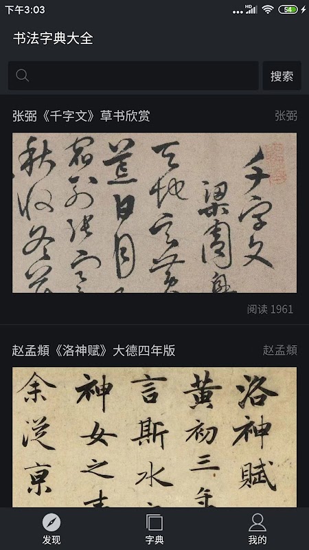 200 000 каллиграфических знаков известных мастеров прошлых династий, в том числе пять шрифтов: печатный шрифт, официальный шрифт, обычный шрифт, бегущий шрифт, скоропись и т. д. Изучайте каллиграфию, практикуйте каллиграфию и изучайте каллиграфию!