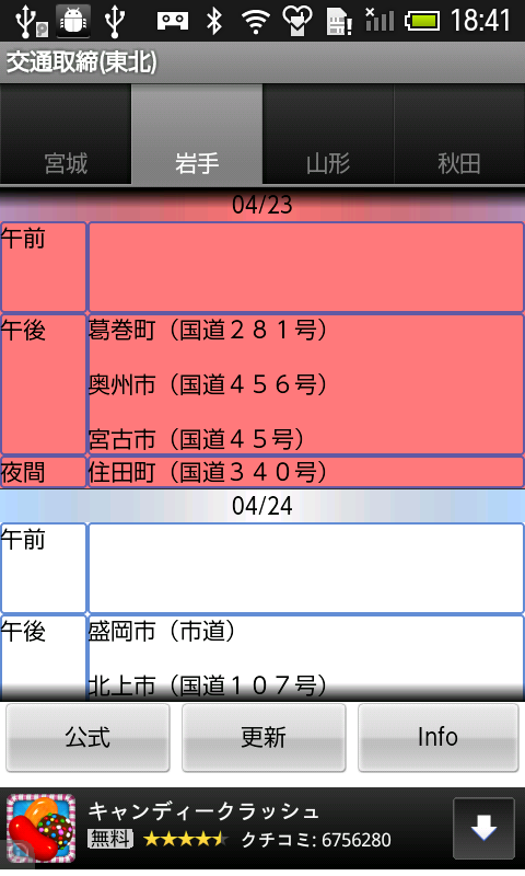 東北エリア(秋田県、岩手県、宮城県、山形県)の公開交通取締情報を確認するアプリです。