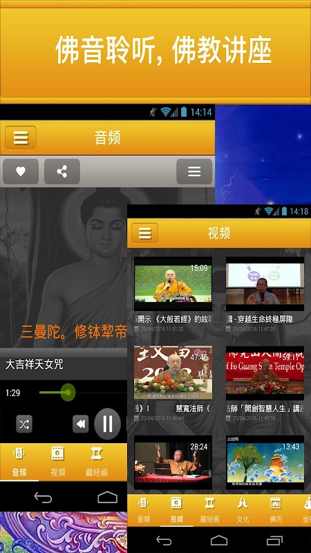 【佛教:听佛音,读佛经,看佛历,坐禅】是一个能帮你打开心灵智慧,带来宏大智慧和无尽福运的应用程序。让我们一起散播佛法,散播爱,佛经与诸位大德广结善缘。