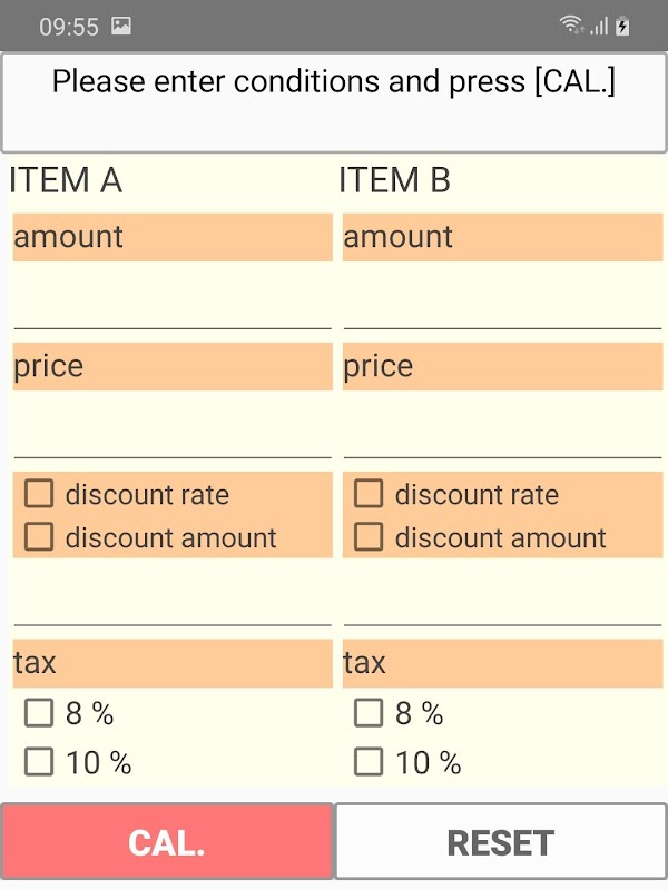 1. Enter the prices for items A and B.