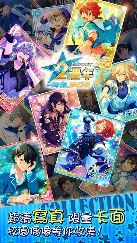 《偶像夢幻祭》是一款美少年偶像養成手遊,以互動劇情體驗與卡牌收集養成為核心玩法。玩家可在劇情中訓練偶像們並有策略地完成偶像競賽。