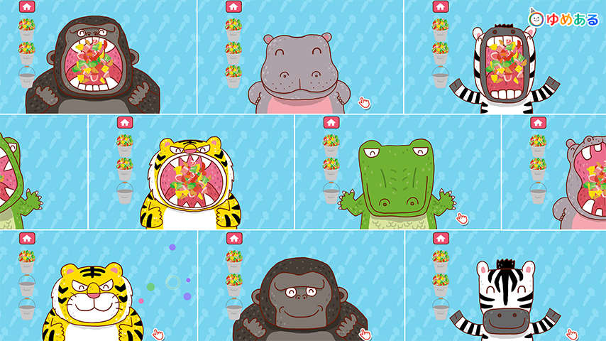 Нарезайте ингредиенты и кормите животных, таких как панды и слоны!