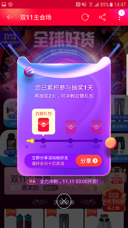 包括每日超级红包,购物津贴,理想之城,京东双十一红包