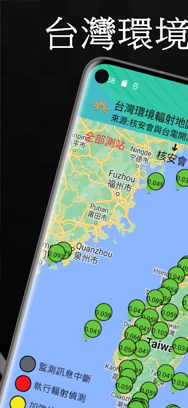 Специальное заявление: Приложение «Радиационная карта окружающей среды Тайваня» не представляет правительство, политические образования, агентства, организации или их дочерние ведомства и использует только их общедоступные открытые данные. Он предоставлен для справки пользователей и не несет ответственности за точность или доступность этих открытых материалов.